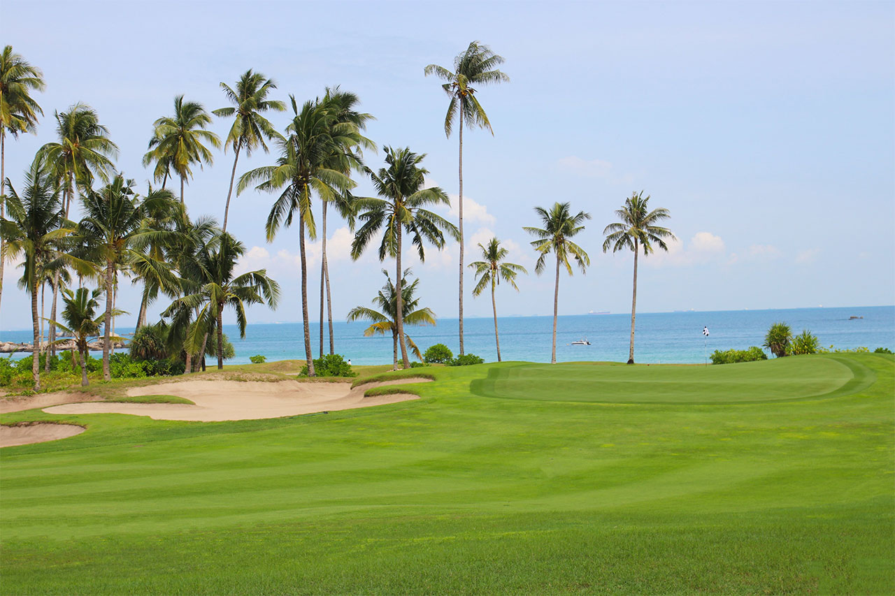 Laguna Golf Bintan set on 60-hectares on the shores of the Straits of Singapore. Initially designed by Greg Norman, the Bintan golf was brought up to modern standards in 2016 by Paul Jensen.