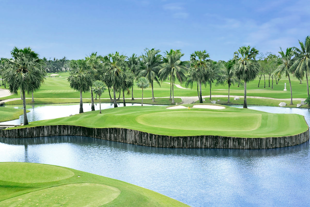 Several notable holes include five with island greens - holes 1, 2, 3, 7, 9, and 18. This starting hole is a monster 463 yard par-4. A long and accurate tee shot is needed to have a par chance and avoid the out-of-bounds left and large bunker complex to the right. The approach shot requires a long iron or fairway wood to a reasonably open green. The Bangkok golf course signature holes are the long par-4 9th and the par-5 18th.  At both holes, players have to negotiate a vast lake that protects the green.