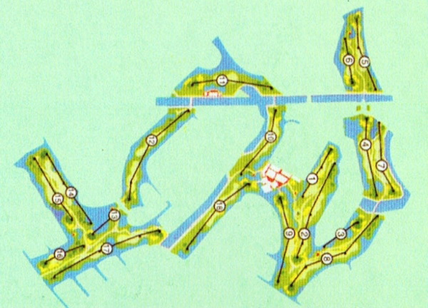The 7,238-yard layout features native Zoysia grass fairways and ultra-dwarf TiffEagle greens. Wide fairways flanked by large mature trees are the general rule. While strategically placed bunkers, as well as natural lakes and streams, form hazards that come into play on most holes of the otherwise flattish course.