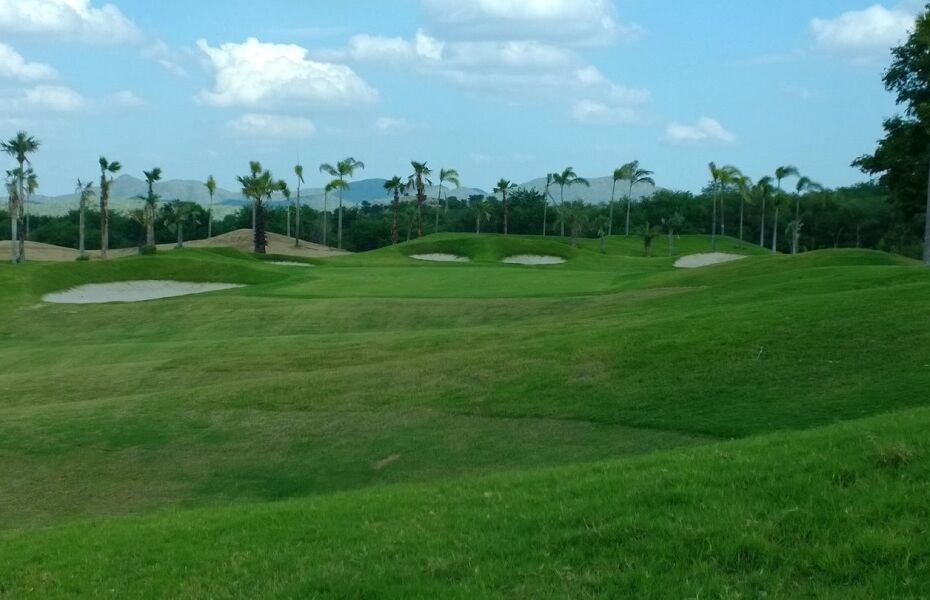 Paspalum grass used from tee to green is lush but requires long carries as rolls are uncommon. The best hole at Blue Star is #6, a long par-4 surrounded by five large greenside bunkers. A bogey here could be a good result.