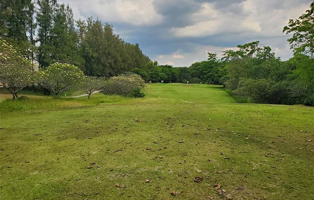 Lining the Khao Yai golf course, the tightly interlaced wooded hills, so distinctive of the Khao Yai region, provide almost every hole with its own stunning backdrop. Where the jungle clad hills don't suffice, then flower beds, shrubberies, rockeries, and all manner of water hazards also contribute to the picturesque and sometimes garden-like qualities of this layout. Flanking the fairways is a good-width of semi-rough, often not much longer than the fairway length grass, and beyond the "short stuff", thick vegetation and a variety of palms and other tree varieties await.